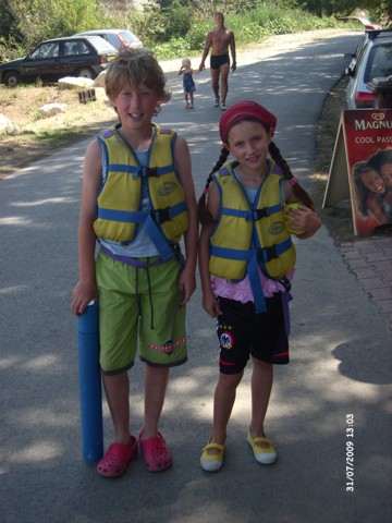 Derweil die Eltern beim "Schlemmen" sind, können sich die Kinder in Sichtweite am Flußufer im Wasser tummeln und spielen.